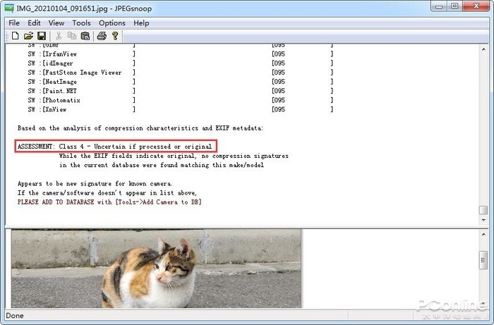 根據(jù) JPEGsnoop 給出的信息,這張圖片是經(jīng)過(guò)處理或者編輯的,也就是說(shuō)它不是原圖。